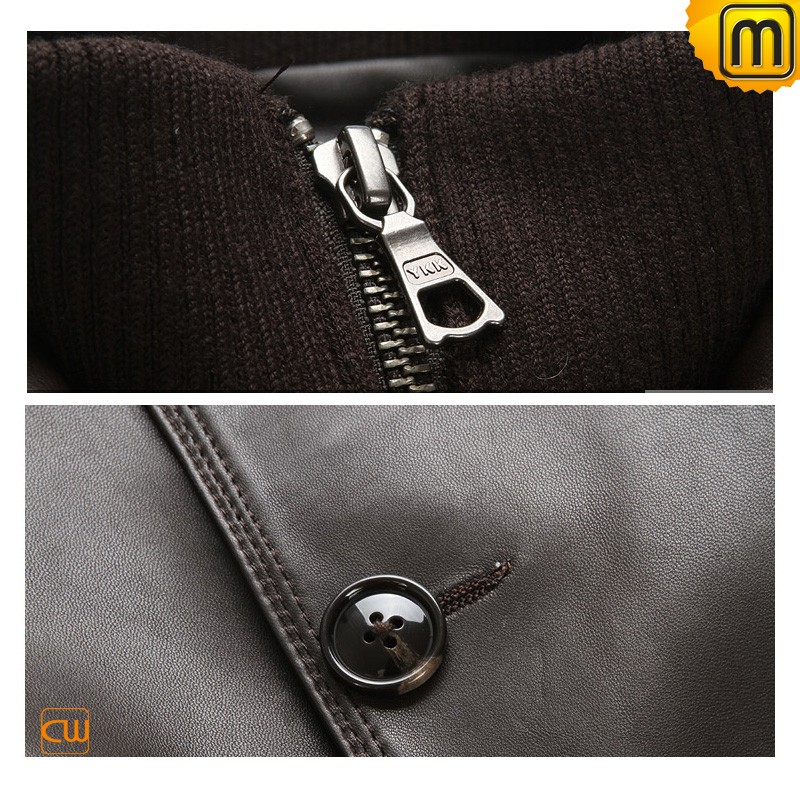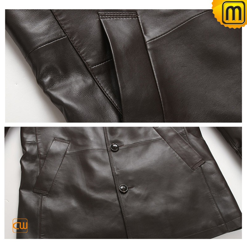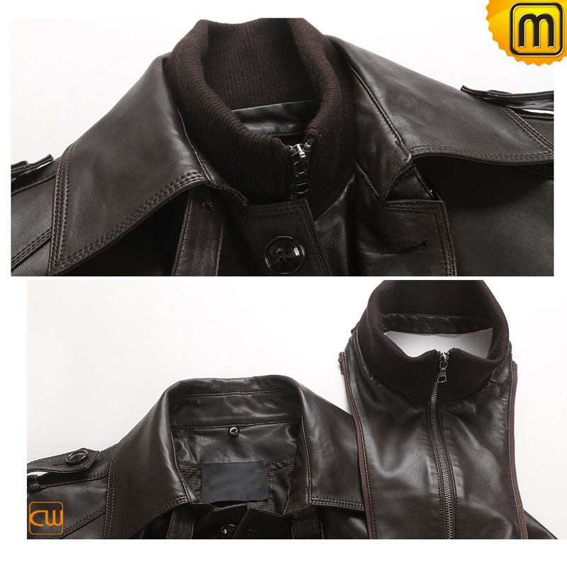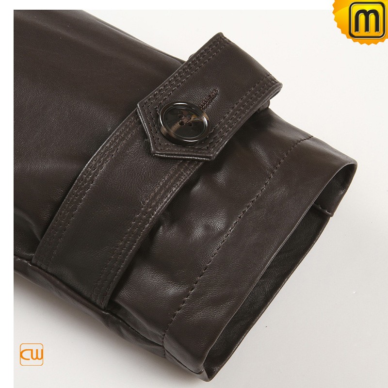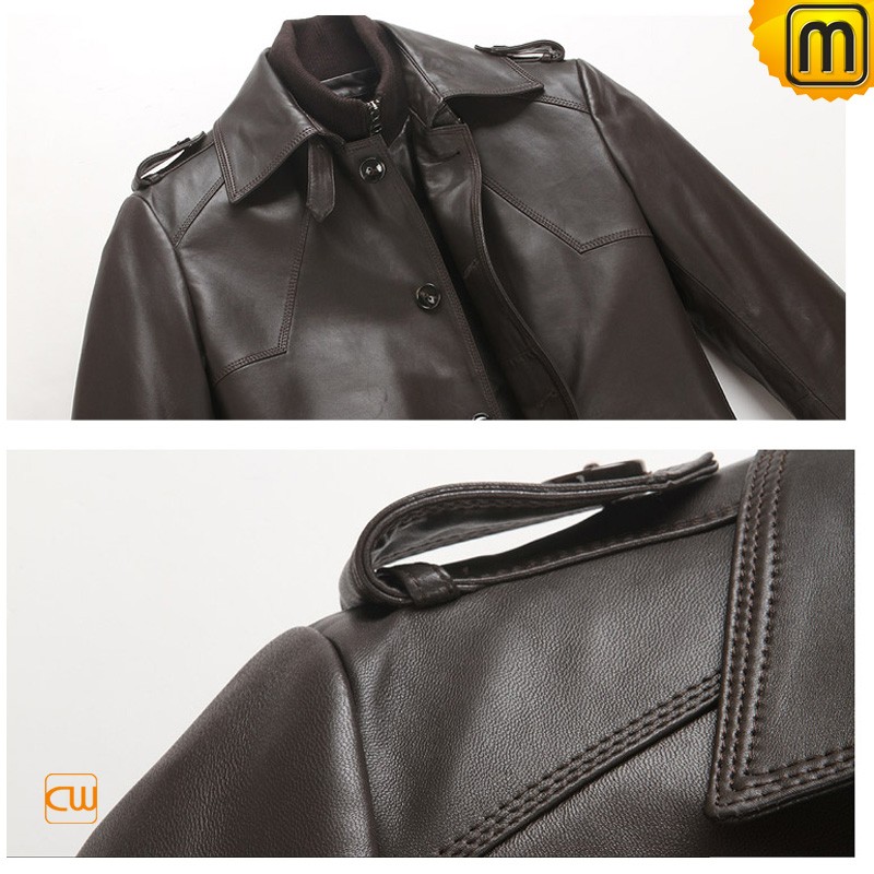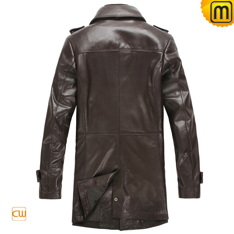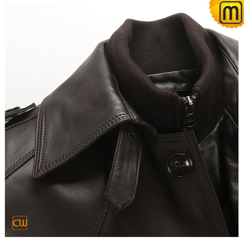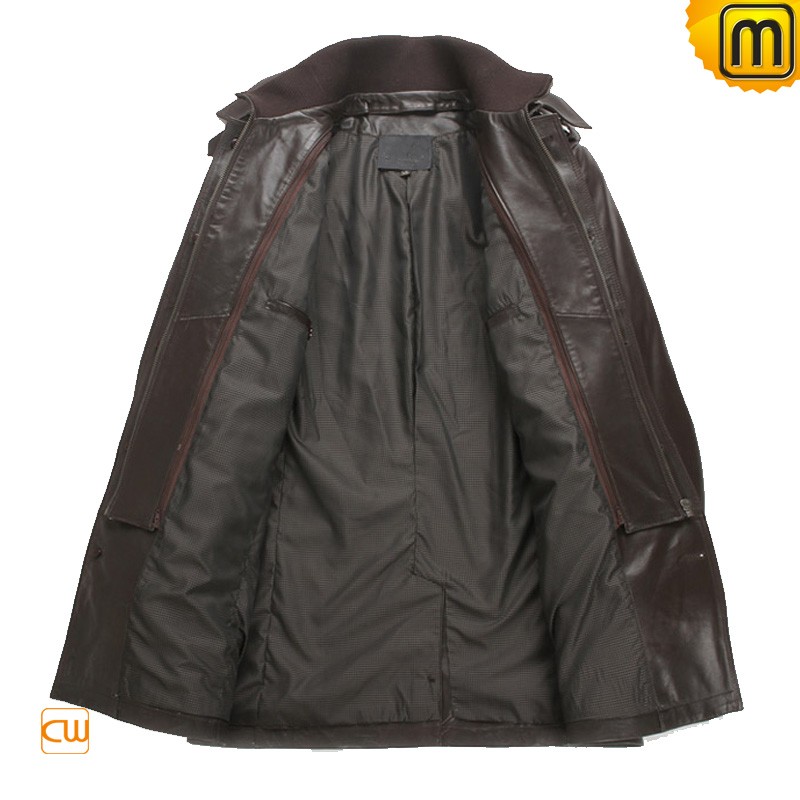 Men's Classics Brown Leather Car Trench Coat CW850863