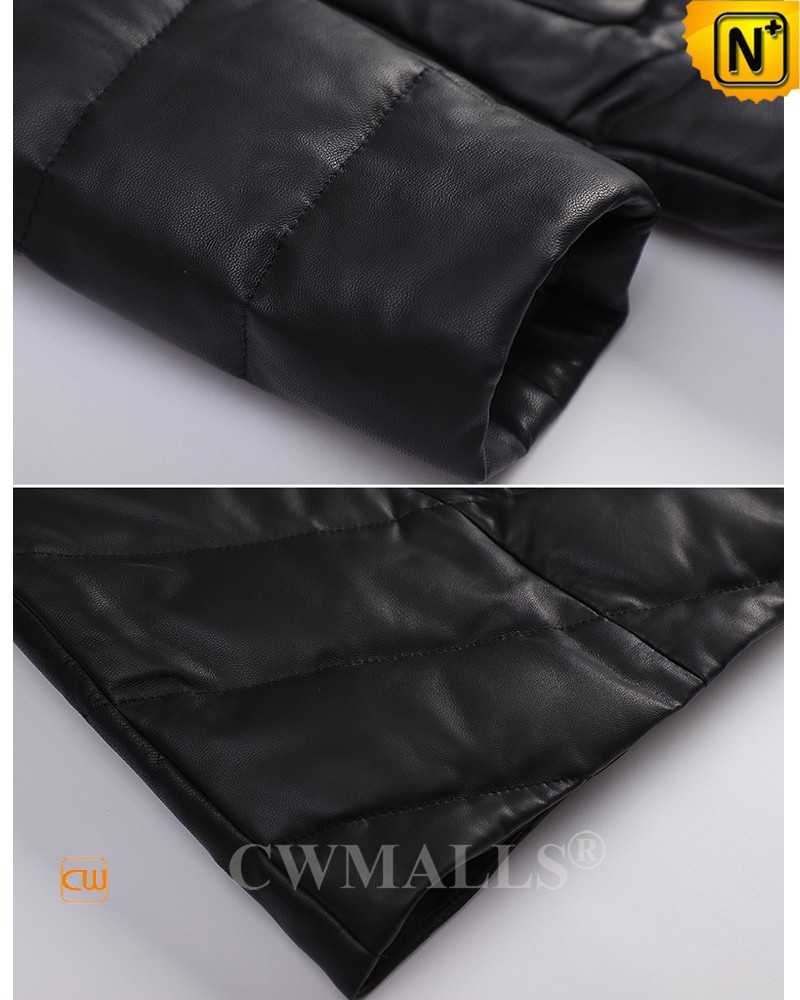 CWMALLS® Women's Black Quilted Leather Down Coat CW602607