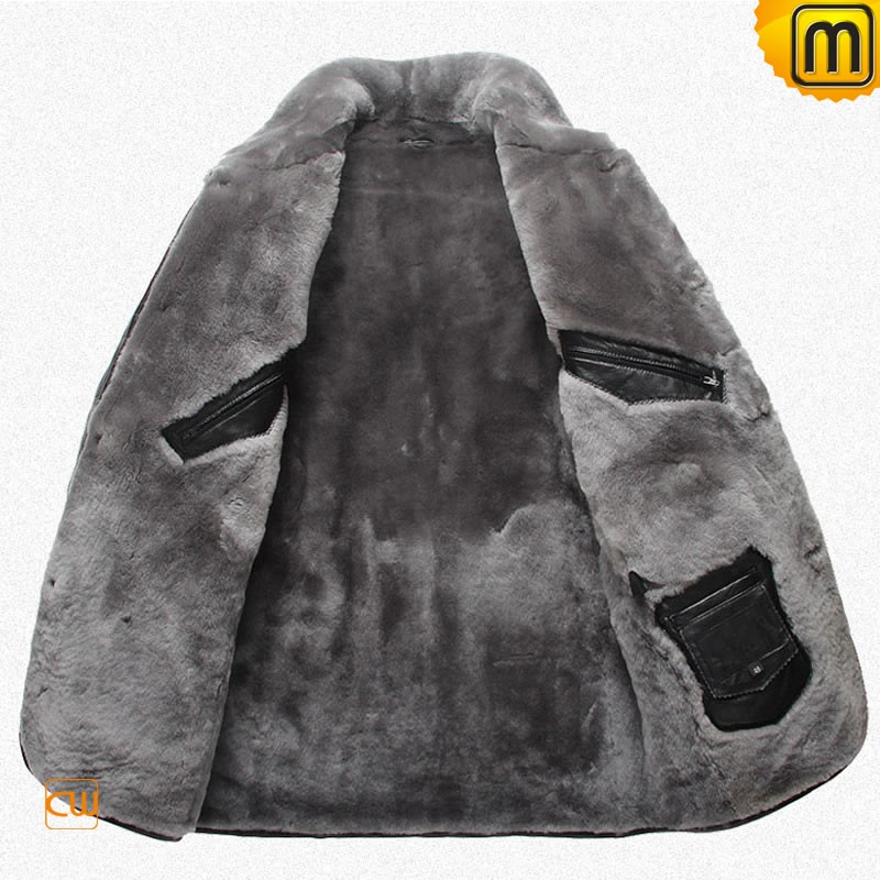 CWMALLS® Mens Black Sheepskin Fur Leather Coat CW877913