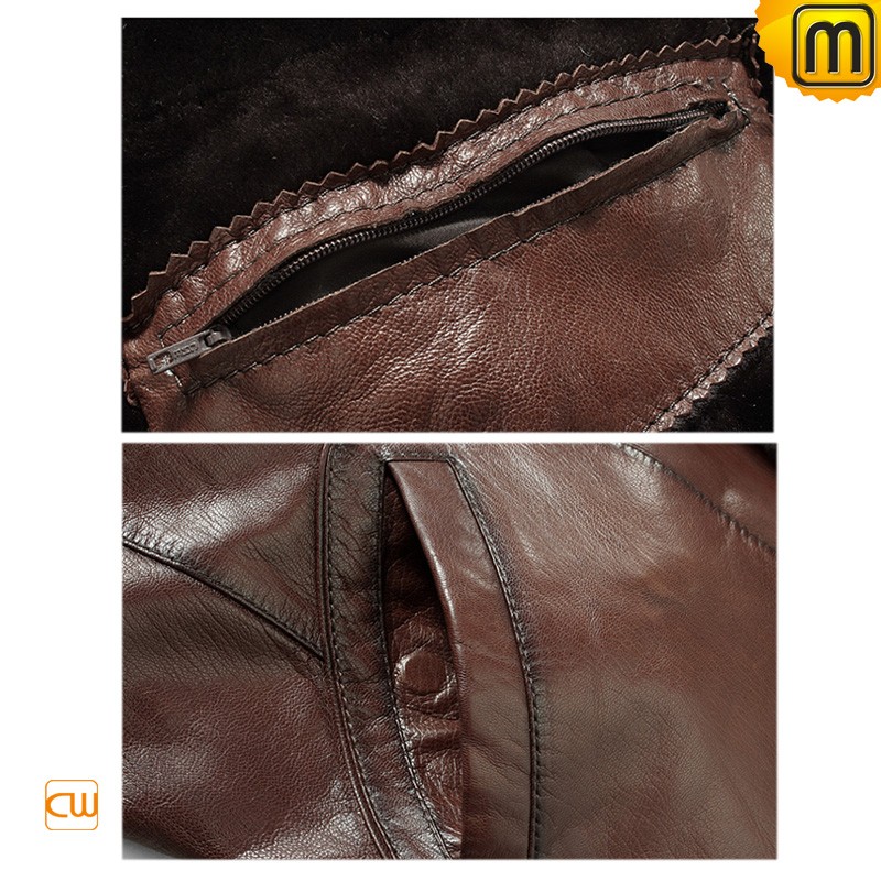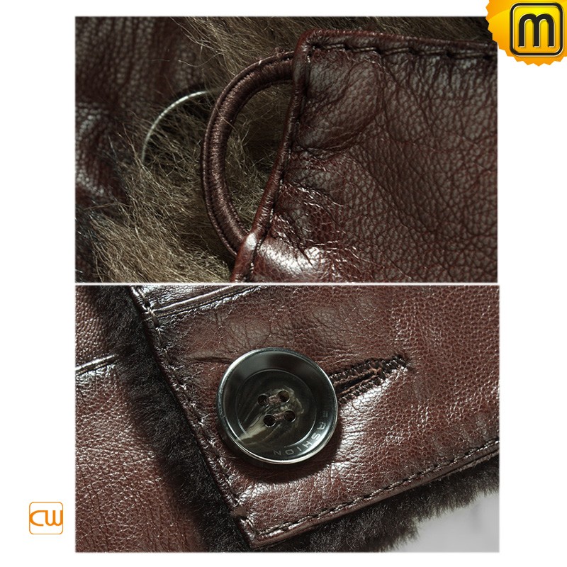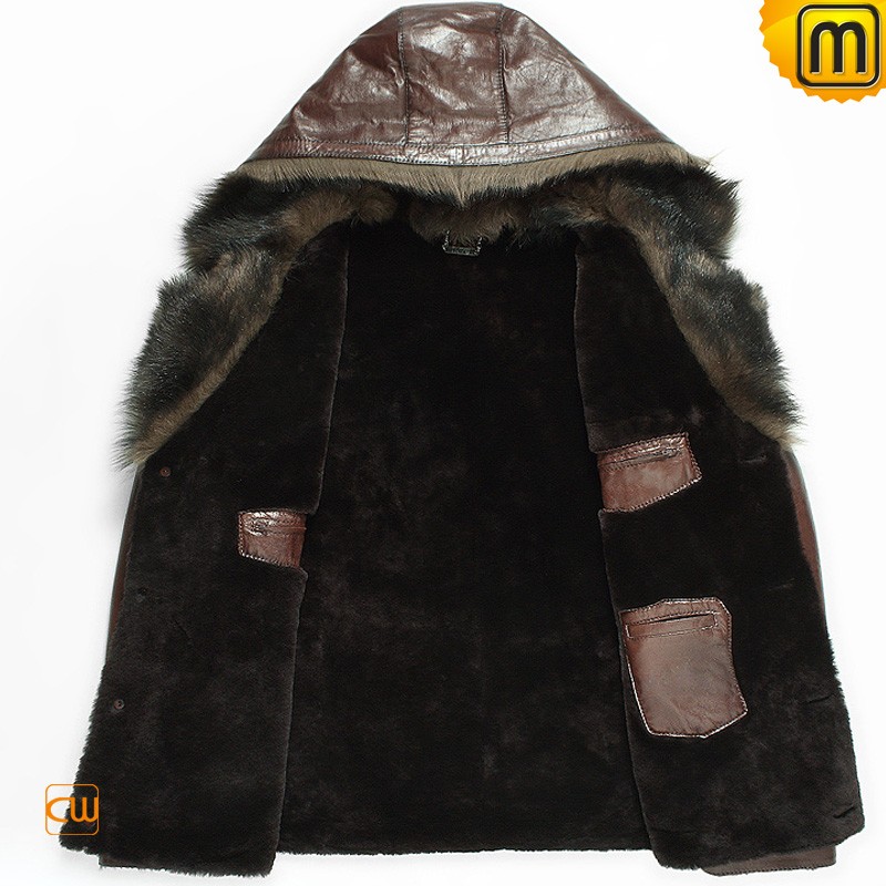 CWMALLS® Mens Brown Sheepskin Jacket with Hood CW878576