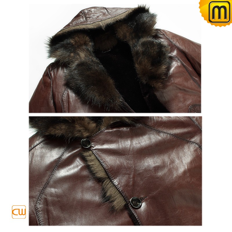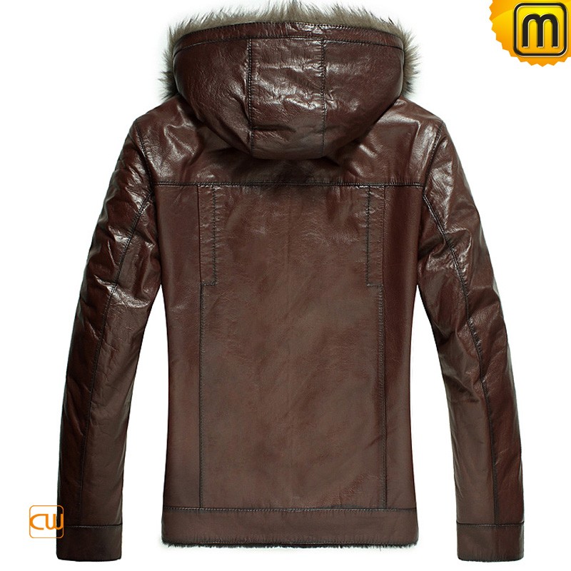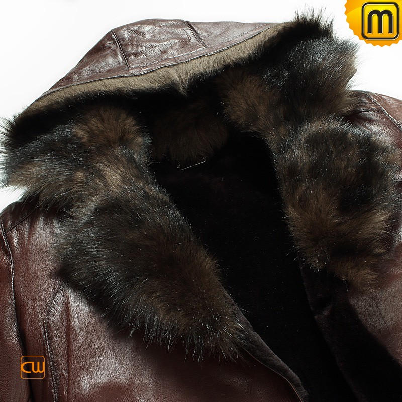 Men's Fashion Hooded Fur Shearling Leather Jacket CW878576