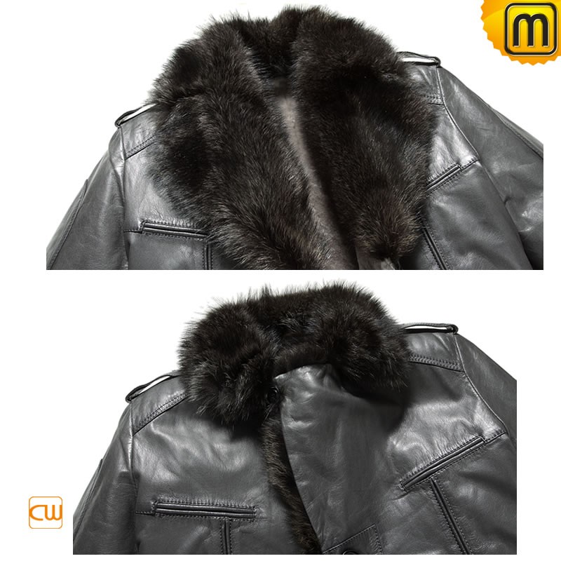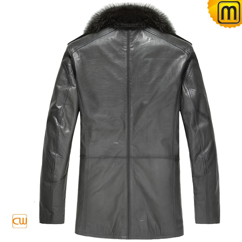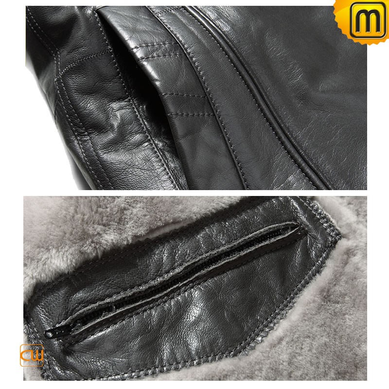 CWMALLS® Mens Shearling Sheepskin Leather Fur Lined Coat Grey CW877211