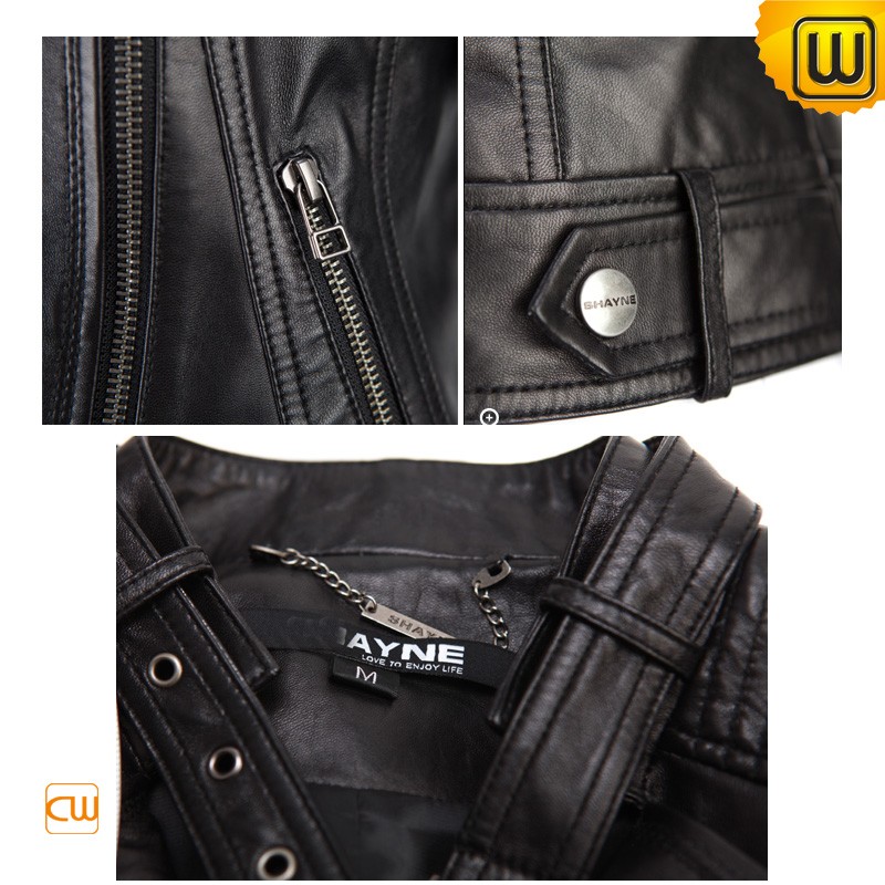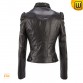 Women Black Cropped Leather Jackets Slim Fit Puff Sleeve CW611217