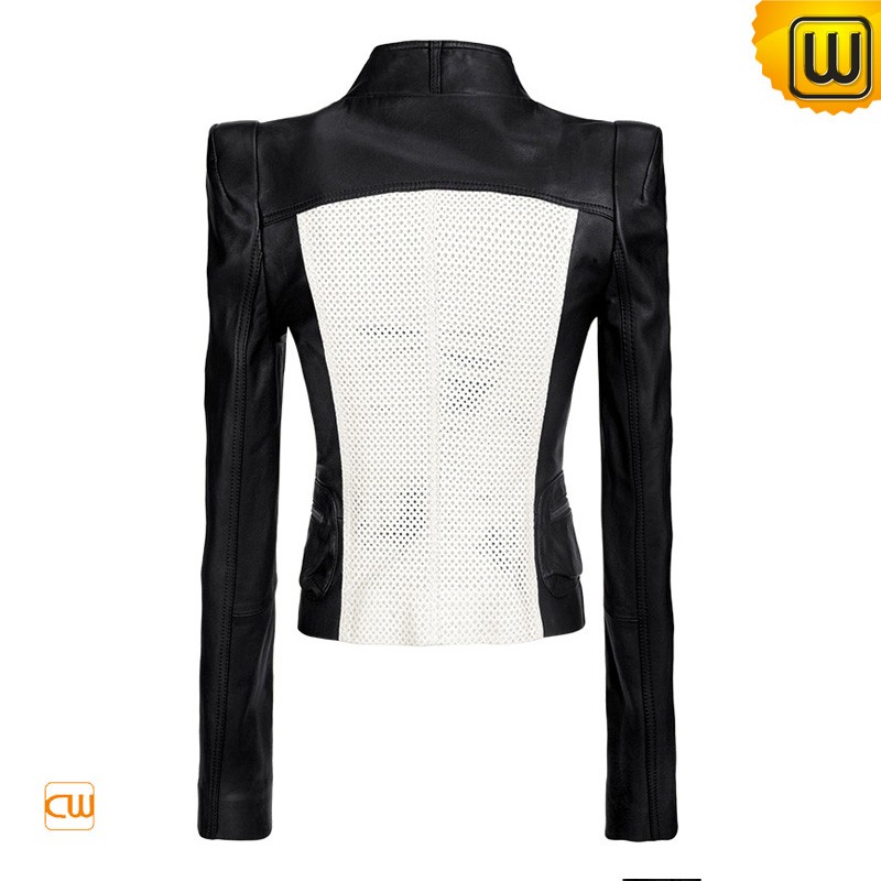 Women Designer Fashion Hollow Out Breathable Contrast Leather Jackets CW608359