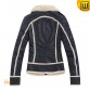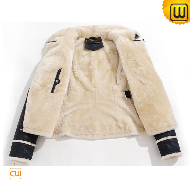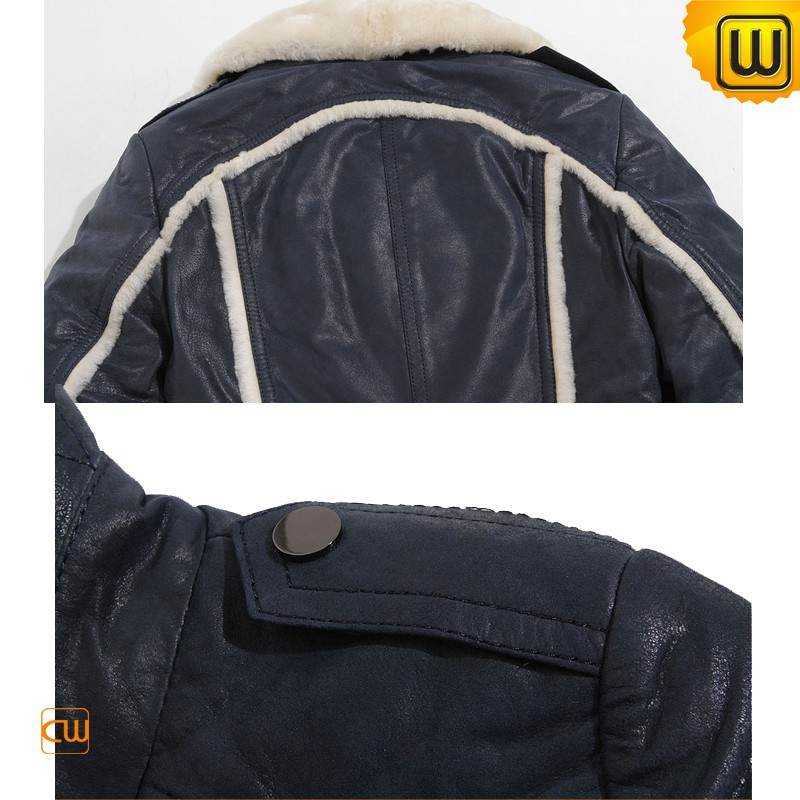 Women's Blue Australian Wool Lined Cowhide Leather Jackets CW695112