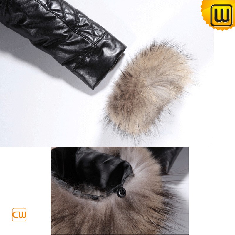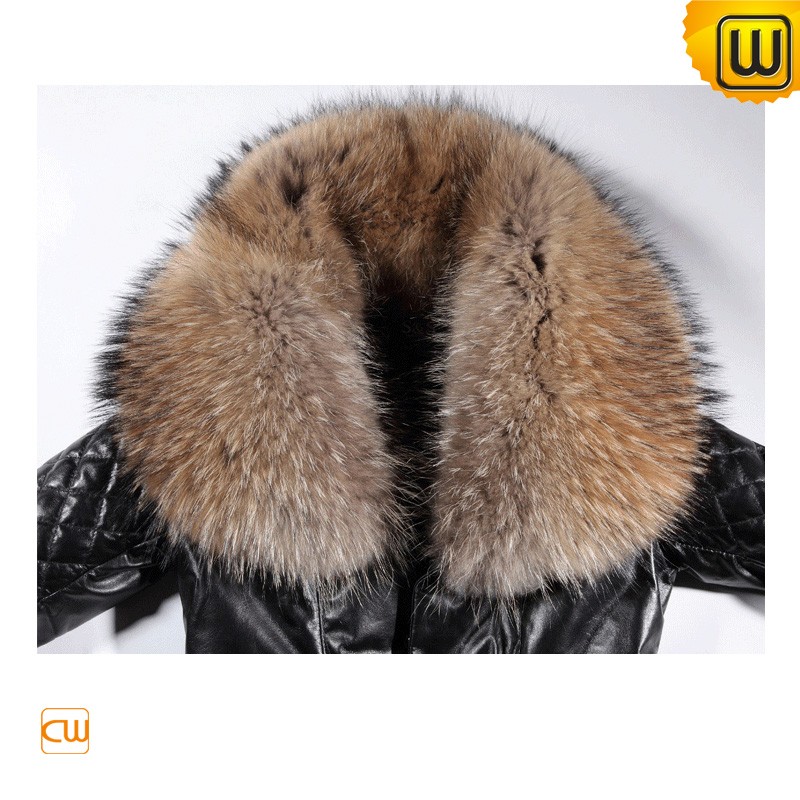 Women's Warm Large Raccoon Fur Leather Down Coats CW685529